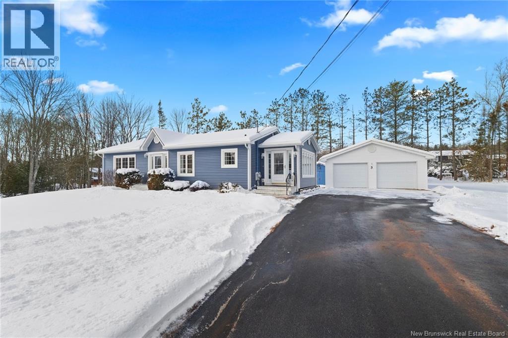 Welcome to this beautifully maintained 3-bedroom, 2-bath bungalow located in the sought-after Smith Subdivision on the edge of Oromocto. Set on a rare 1-acre lot, this property offers the unique benefit of a private well with municipal sewage. Pride of ownership is evident throughout, with the home having been meticulously cared for and thoughtfully updated with vinyl siding and windows. The main level features three bedrooms and a full bath, a bright eat-in kitchen with an abundance of beautiful cabinetry, and a welcoming living room with well-kept hardwood floors. A bonus sunroom with large windows provides a perfect space to relax and enjoy the surrounding property. The lower level offers a spacious family room with a cozy propane stove, a second full bathroom, a large laundry area complete with laundry tub and counter space, and plenty of storage. Additional highlights include a double detached garage, ductless heat pumps on both levels, central vacuum, water conditioner, generator panel, and ample storage throughout. A rare opportunity to own a move-in-ready home on a generous lot in a desirable location. (id:6289)